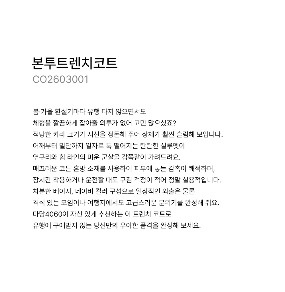 ¸¶´ã4060ÀÇ ¸ðµç ÀÇ·ù Á¦Ç°Àº óÀ½ 1~2ȸ µå¶óÀÌÅ©¸®´×À» ±ÇÀåÇÕ´Ï´Ù.