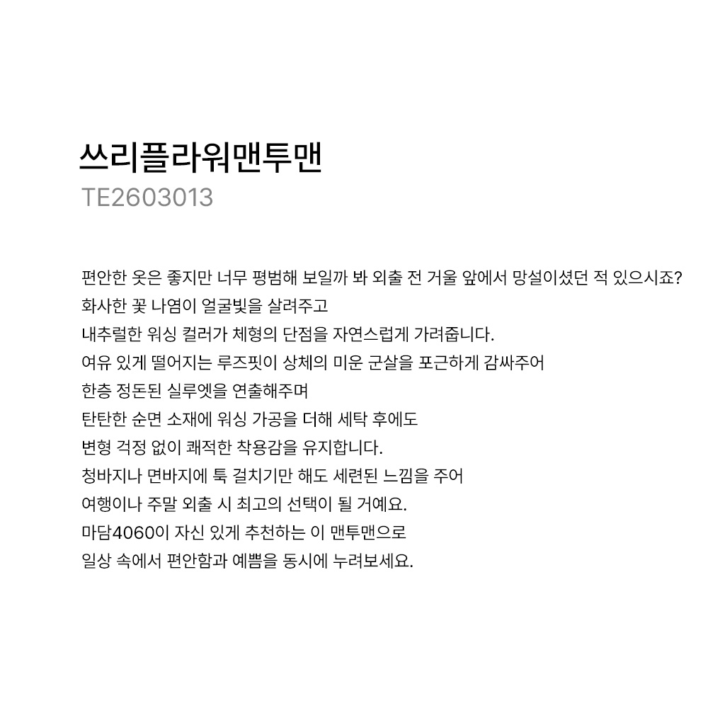 ¸¶´ã4060ÀÇ ¸ðµç ÀÇ·ù Á¦Ç°Àº óÀ½ 1~2ȸ µå¶óÀÌÅ©¸®´×À» ±ÇÀåÇÕ´Ï´Ù.