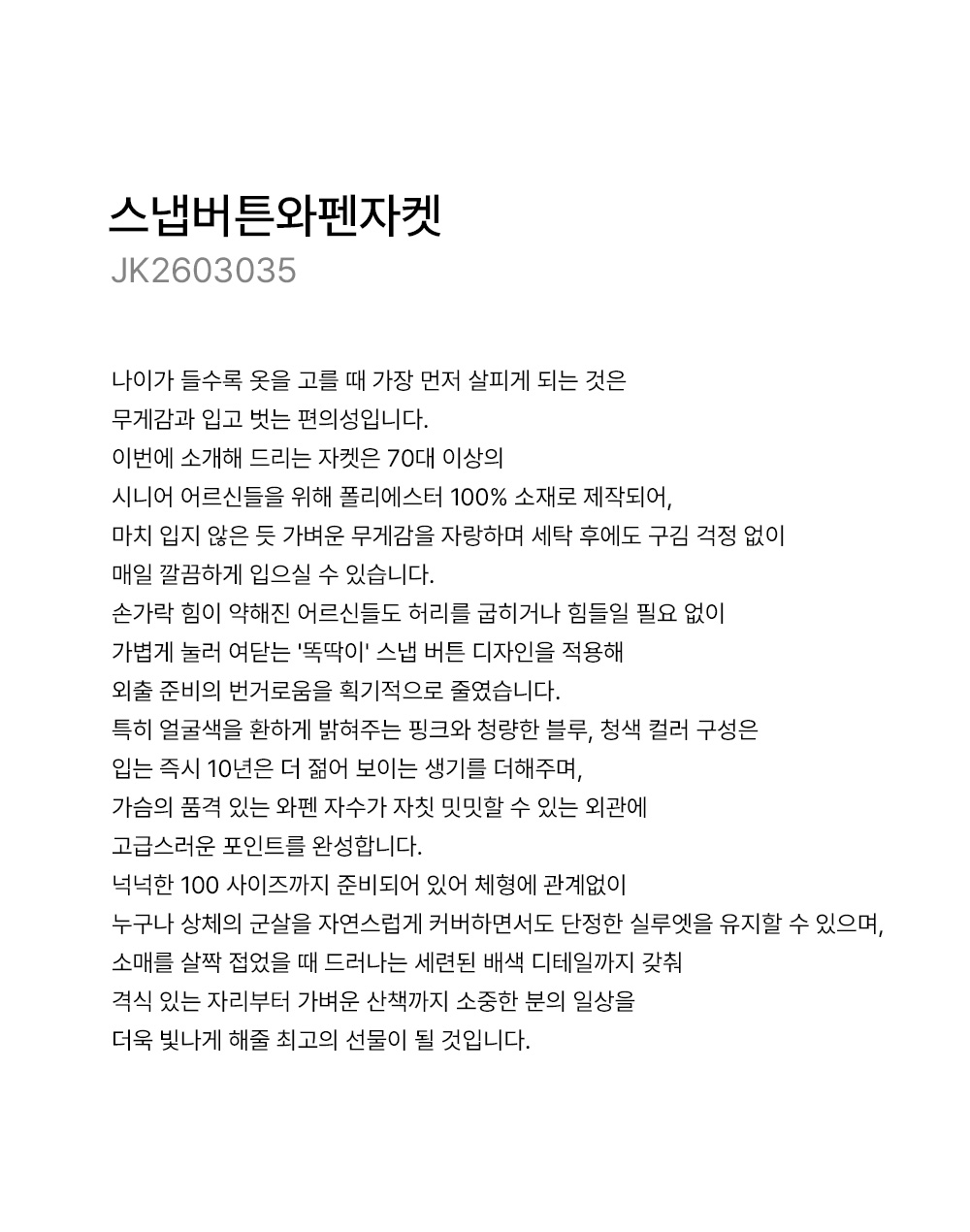 | »çÀÌÁî | L(66~77),XL(88),2XL(99),100 |
